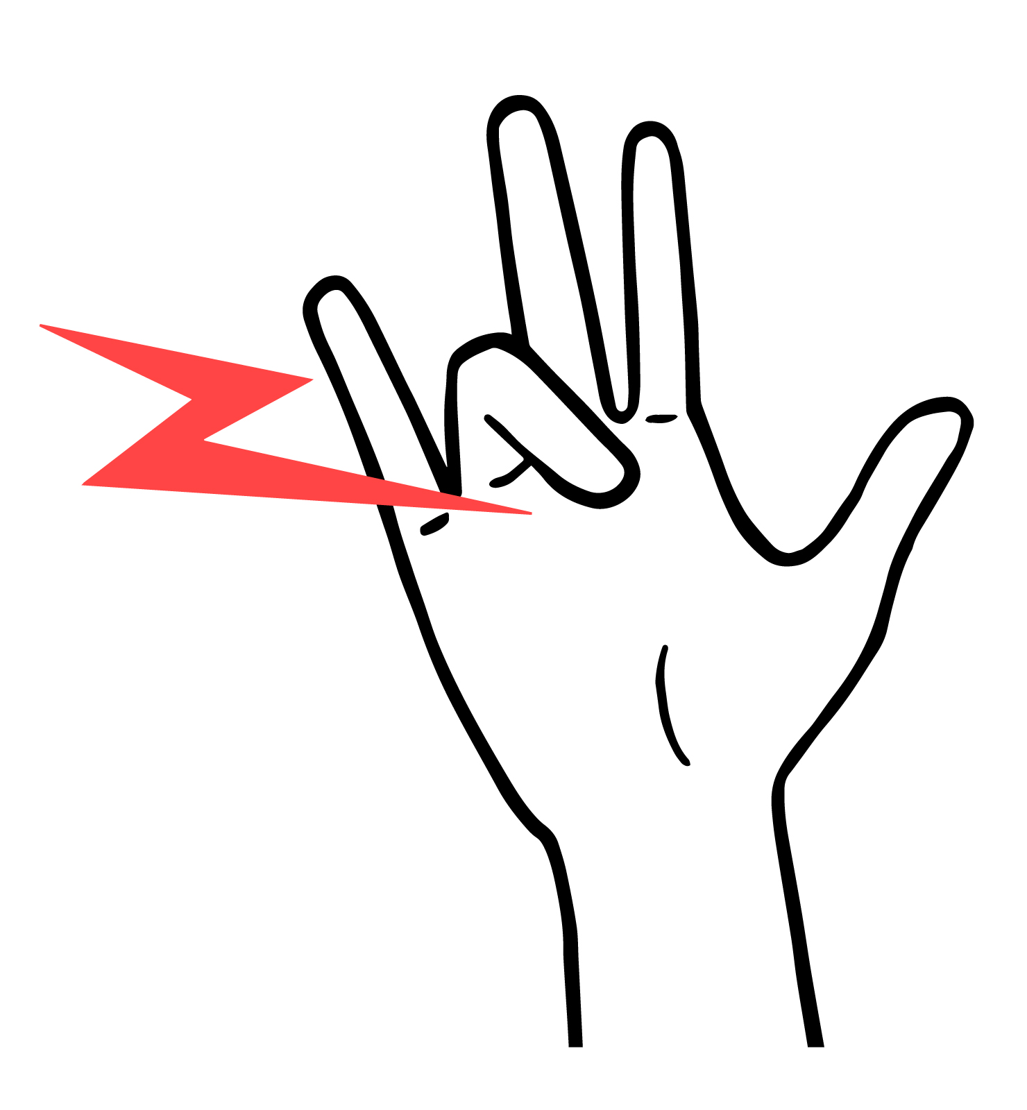 ばね指とは、指を曲げる筋肉の腱と、それを束ねる腱鞘という組織の間で炎症が起こる疾患です。