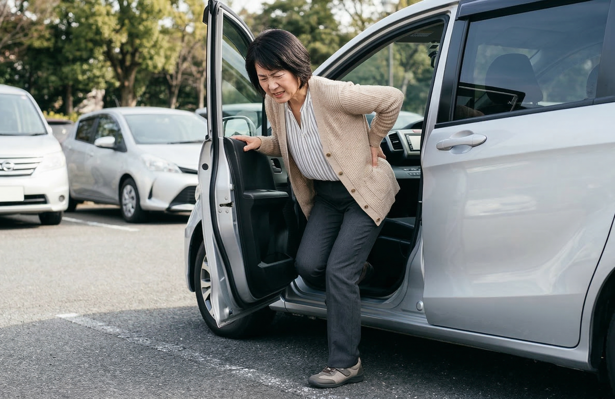 「しばらく座っていた後に、立ち上がるのが痛い」 「車から降りる時に腰が痛む」
