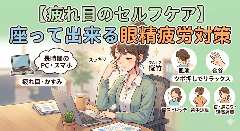 【疲れ目のセルフケア】座って出来る眼精疲労対策